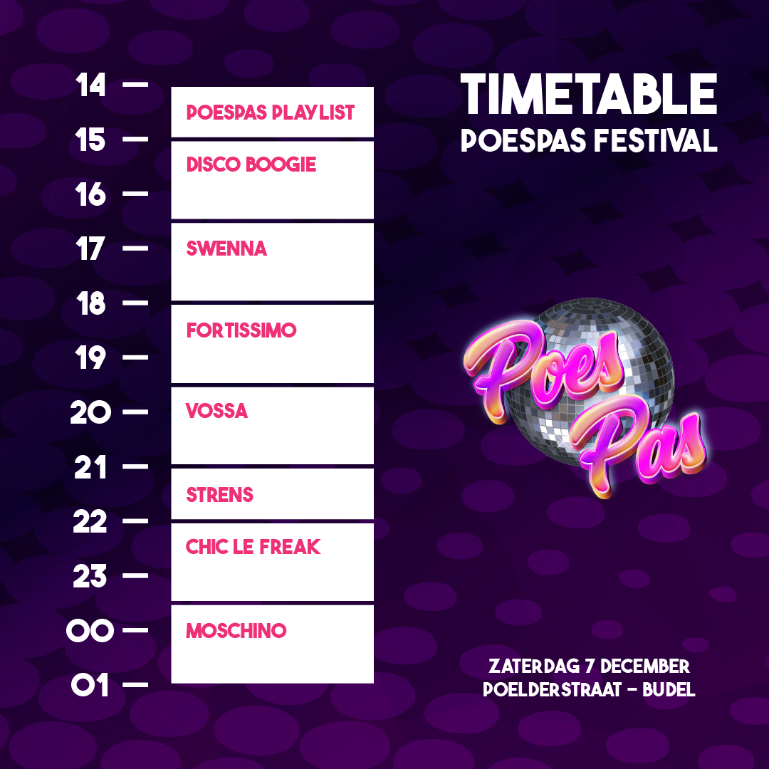 PoesPas draait om gezelligheid, plezier maken doen we met elkaar. Door een ticket te kopen en het evenement te bezoeken verklaar je daarom akkoord te gaan met de algemene voorwaarden en onze huisregels: